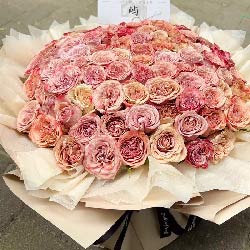广州近日实拍:99朵卡布奇诺玫瑰;牛皮色欧亚纸包装,黑色丝带束扎;