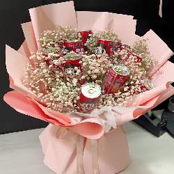 河池近日实拍:11罐旺仔牛奶,满天星丰满;粉色欧亚纸单面包装,粉色丝带束扎;