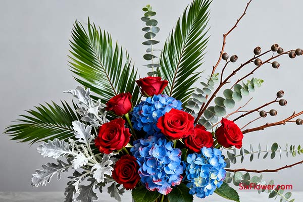 小结:表达豪放格调,精髓在于“控而不抑”。通过巧妙的对比色搭配制造视觉焦点,同时用叶材留白维持秩序,在碰撞中掌控力量,释放活力。